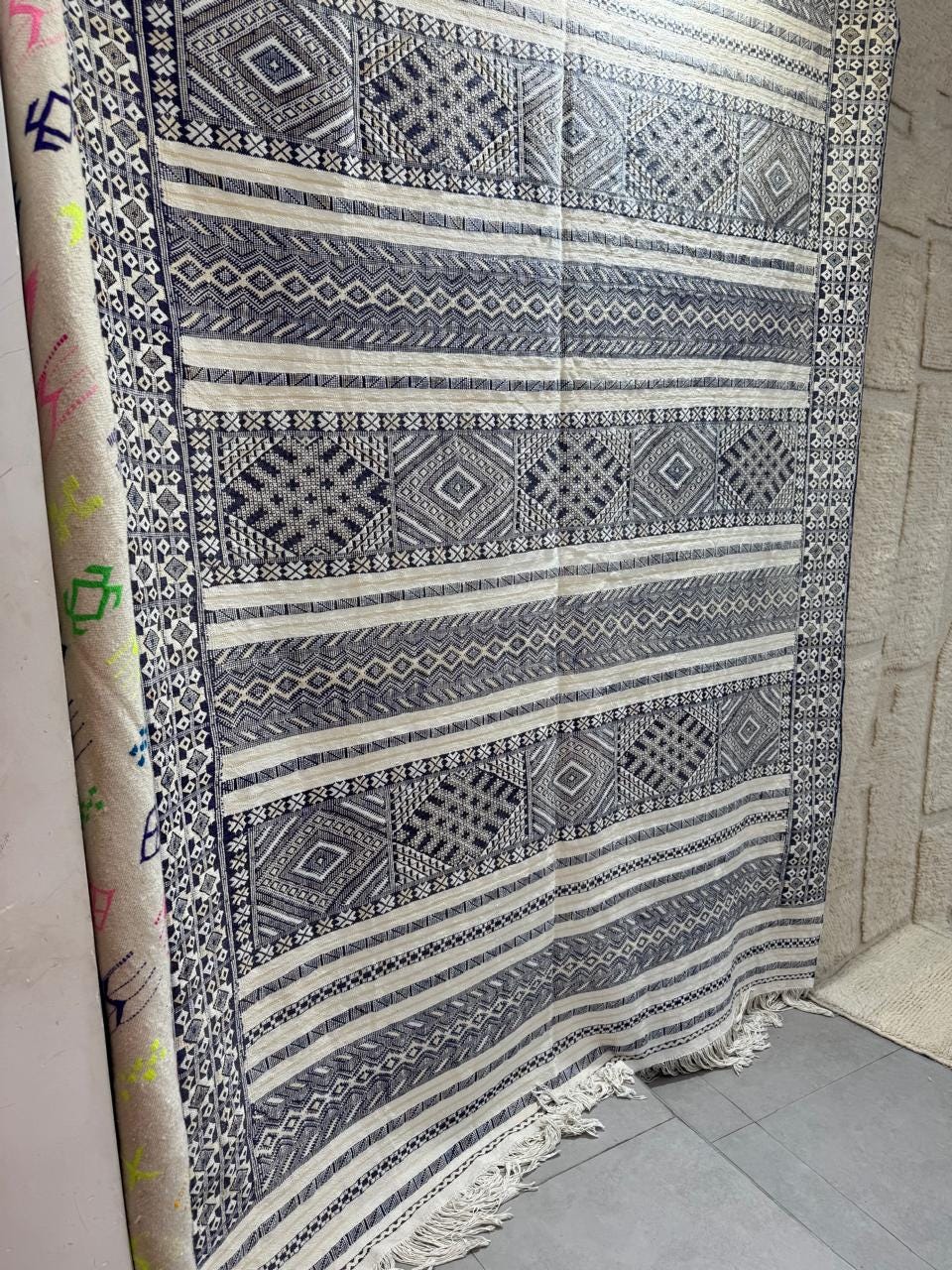 This beautiful kilim rug is of Berber origin and is handmade by Berber women craftsmen in one of thr village in the Atlas Mountains. These carpets are made in an artistic and rare way because a carpet expresses a beautiful story for one of the women in the village.