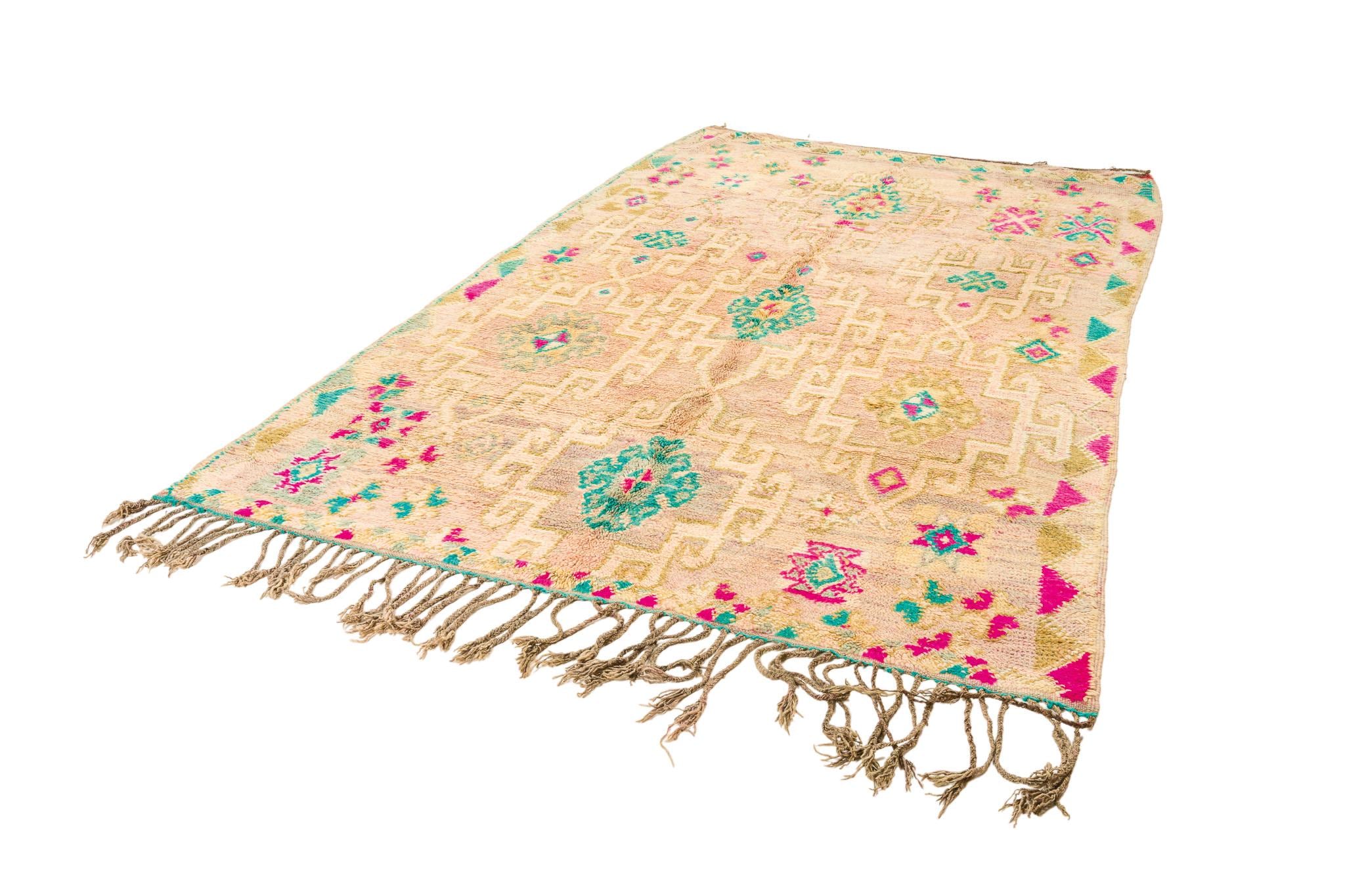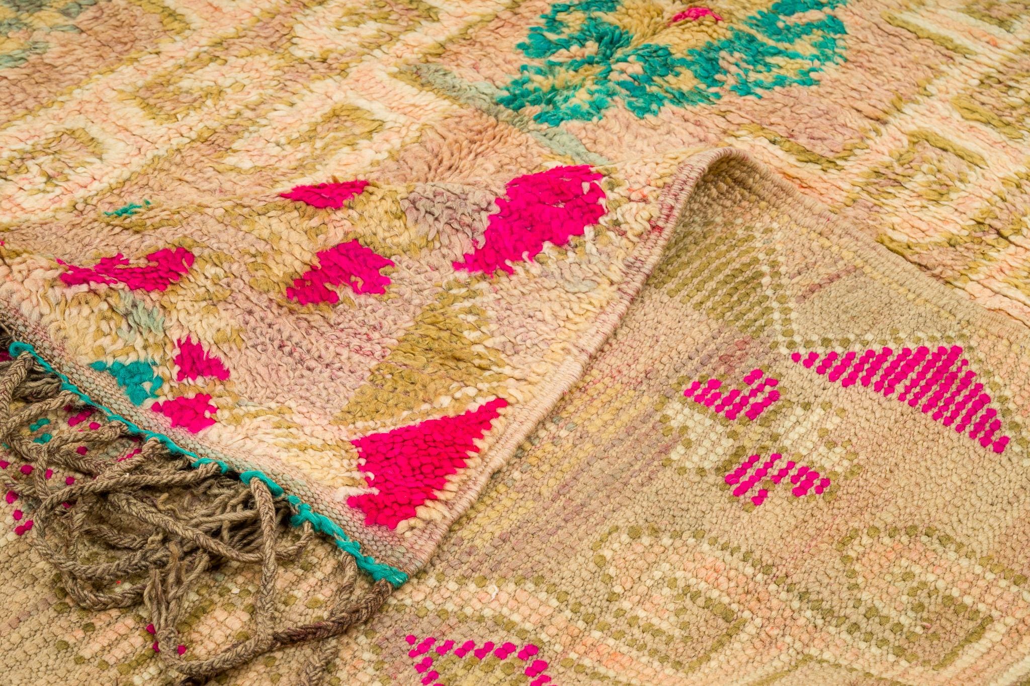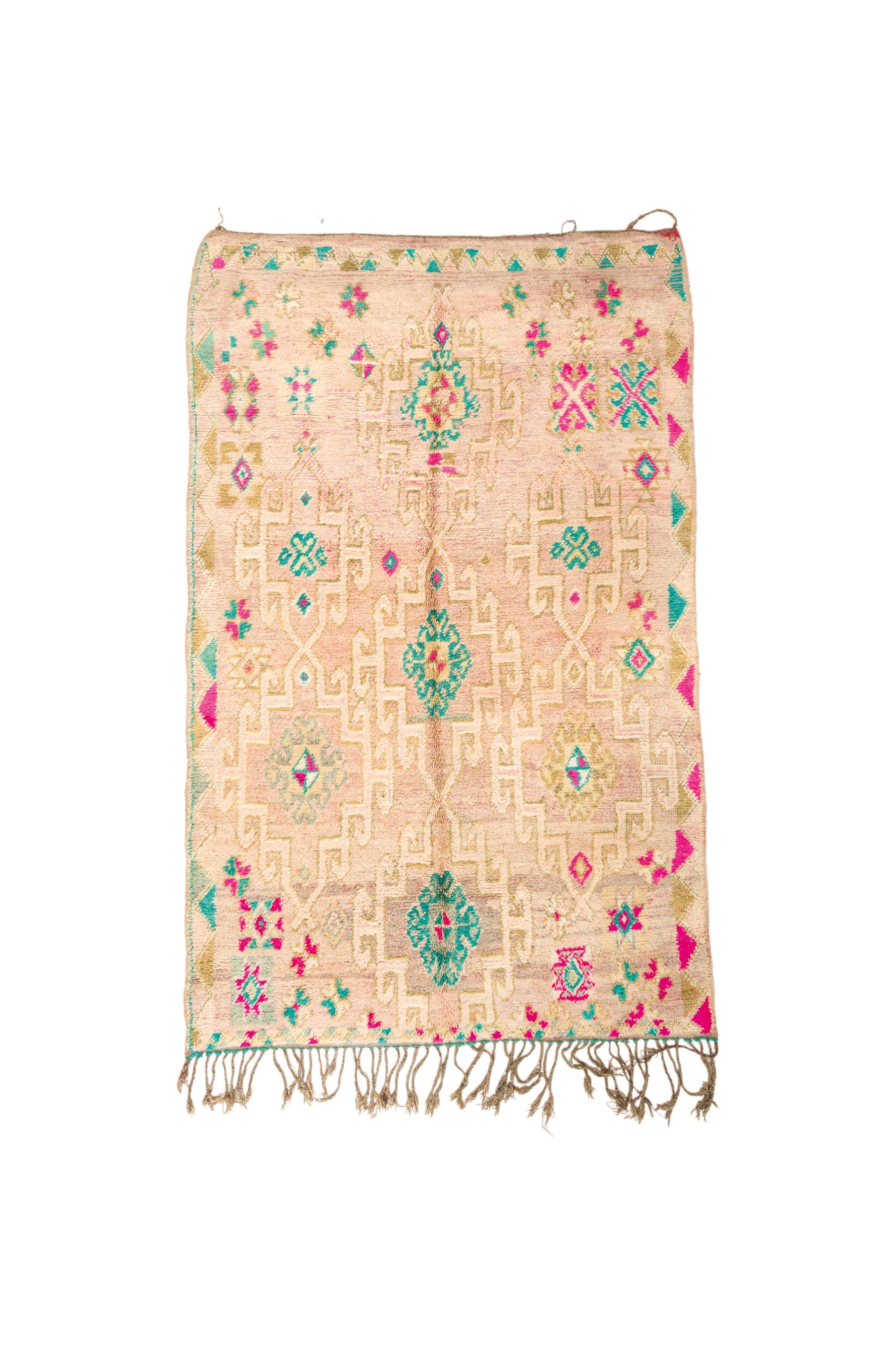 This rare and beautiful rug features a traditional Boujaad design, with intricate patterns and symbols that tell stories of Moroccan culture and heritage. Made from high-quality wool, this rug has been carefully preserved to maintain its original charm and character.