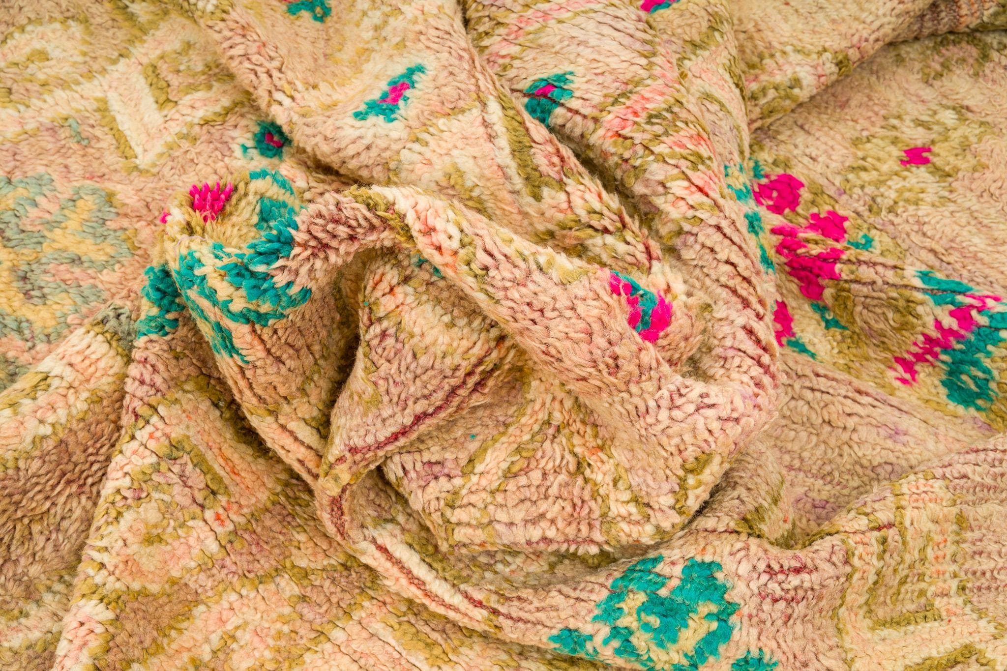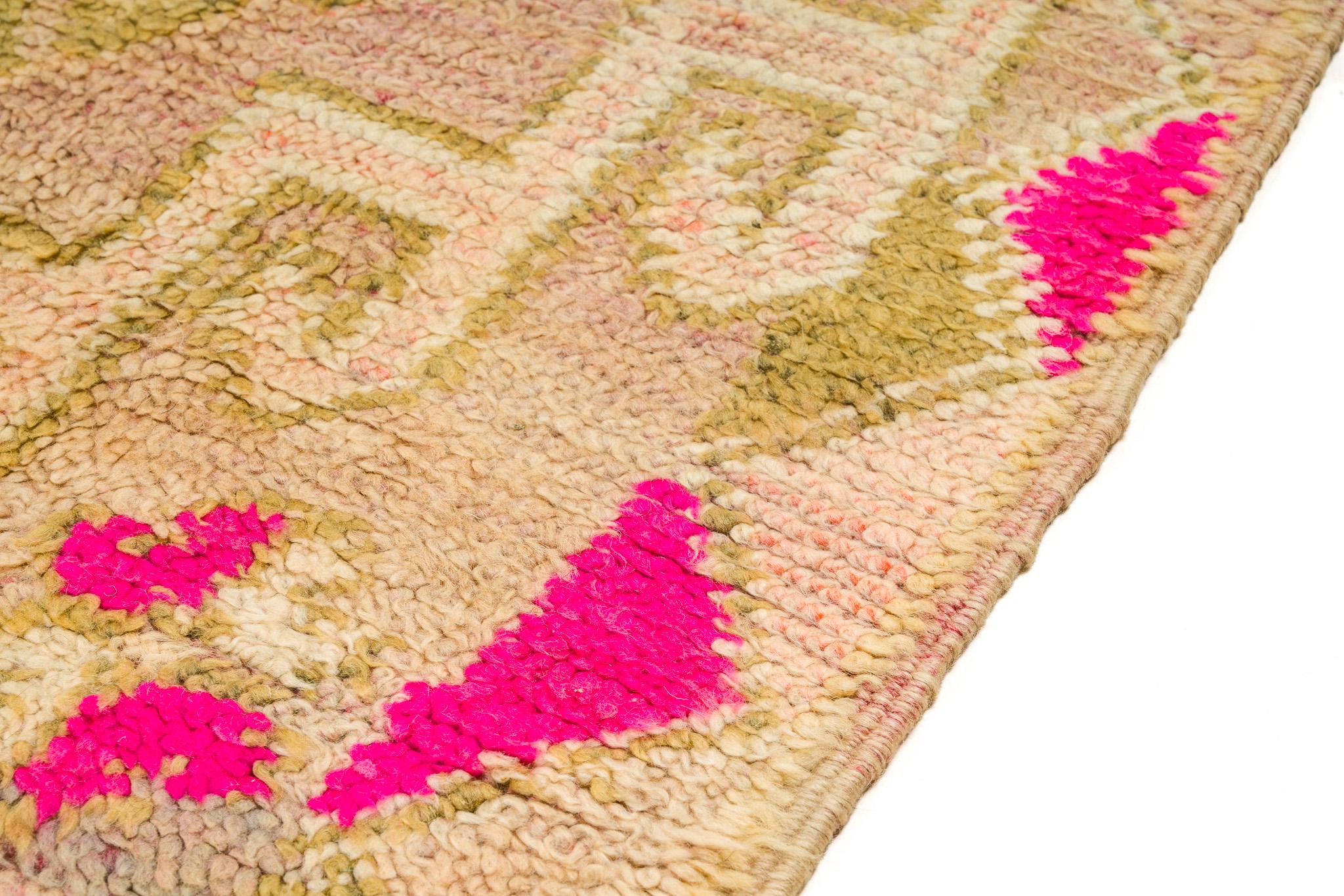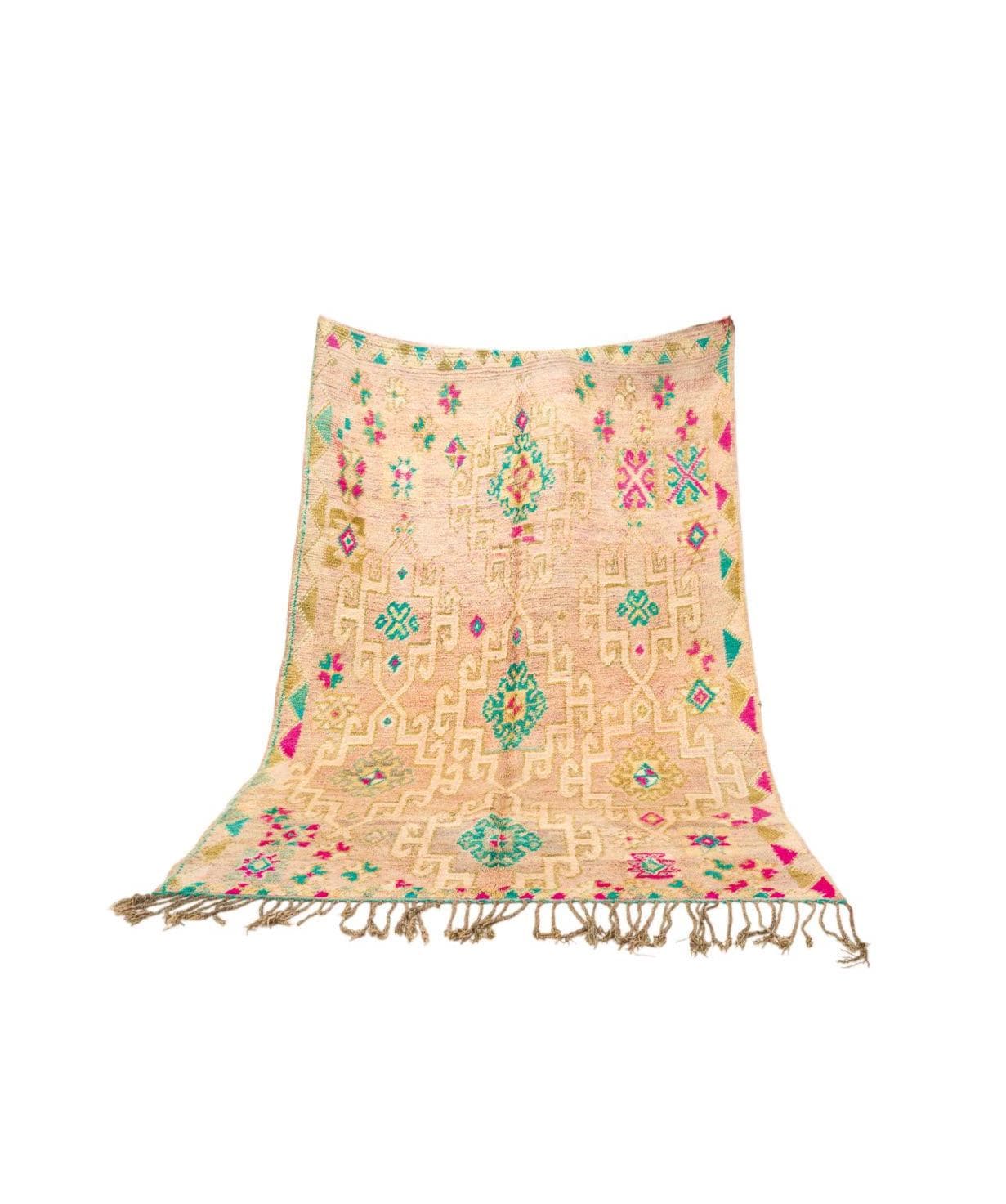 This rare and beautiful rug features a traditional Boujaad design, with intricate patterns and symbols that tell stories of Moroccan culture and heritage. Made from high-quality wool, this rug has been carefully preserved to maintain its original charm and character.