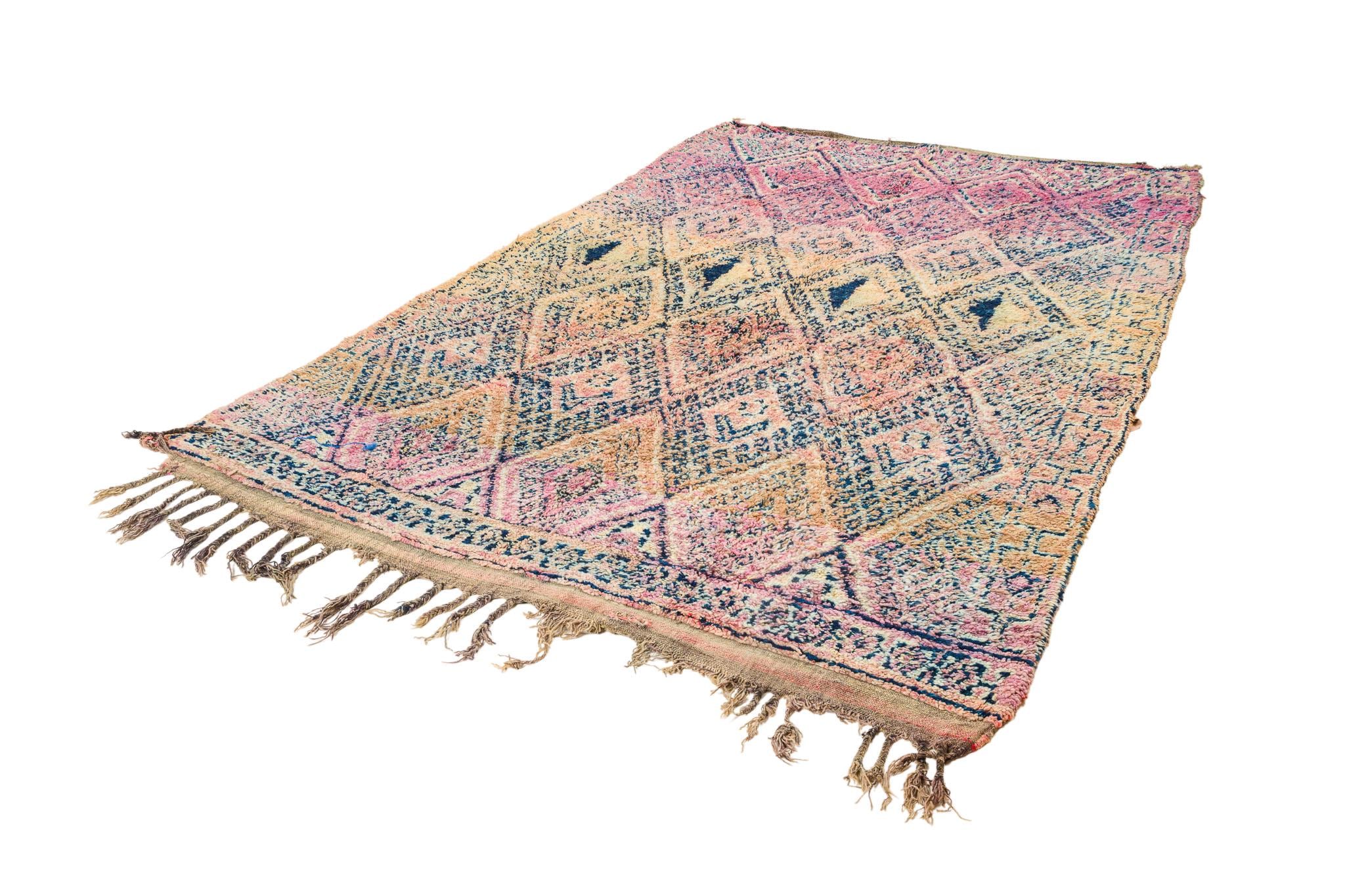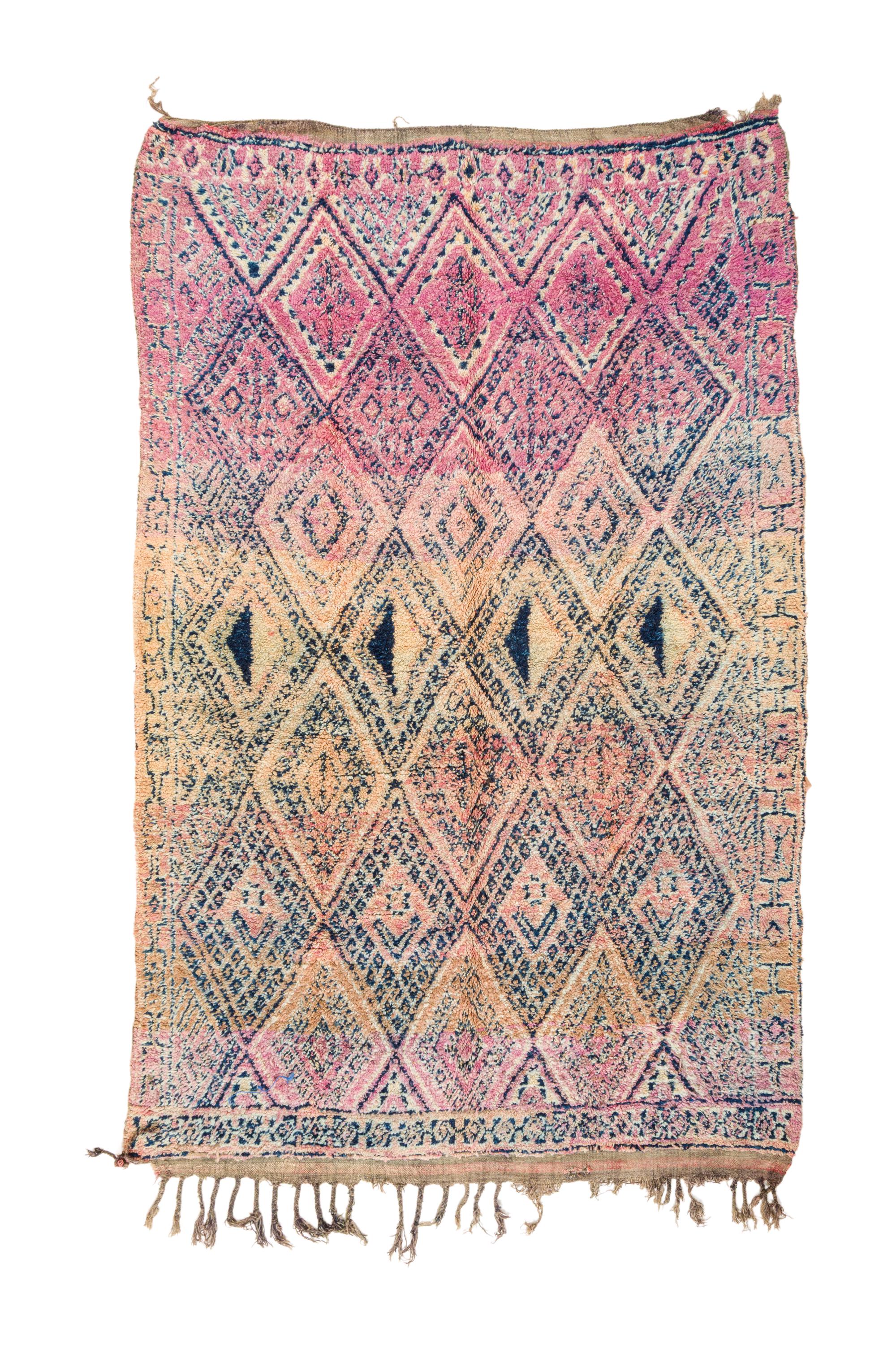 This rare and beautiful rug features a traditional Boujaad design, with intricate patterns and symbols that tell stories of Moroccan culture and heritage. Made from high-quality wool, this rug has been carefully preserved to maintain its original charm and character.