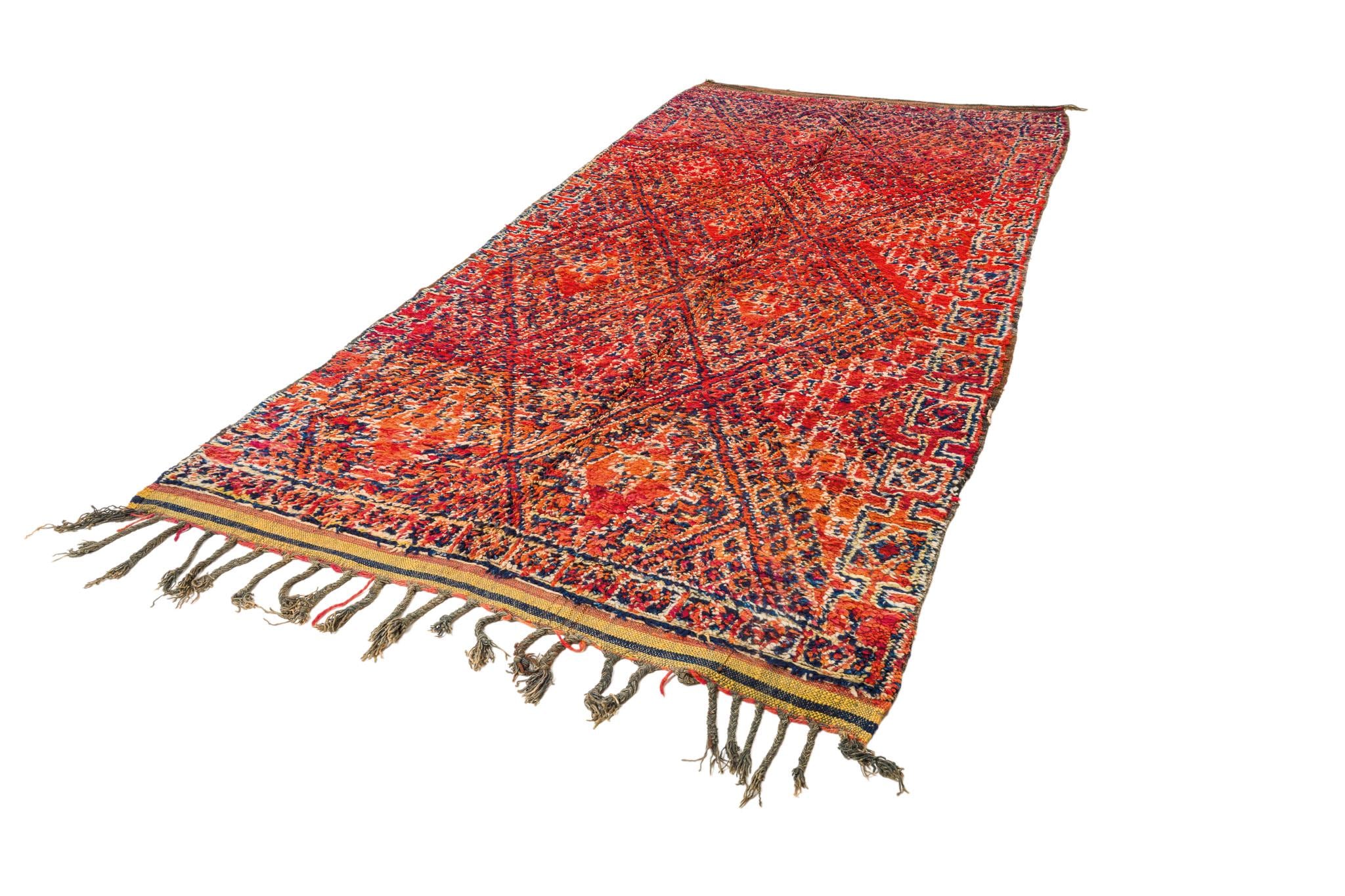 This rare and beautiful rug features a traditional Boujaad design, with intricate patterns and symbols that tell stories of Moroccan culture and heritage. Made from high-quality wool, this rug has been carefully preserved to maintain its original charm and character.