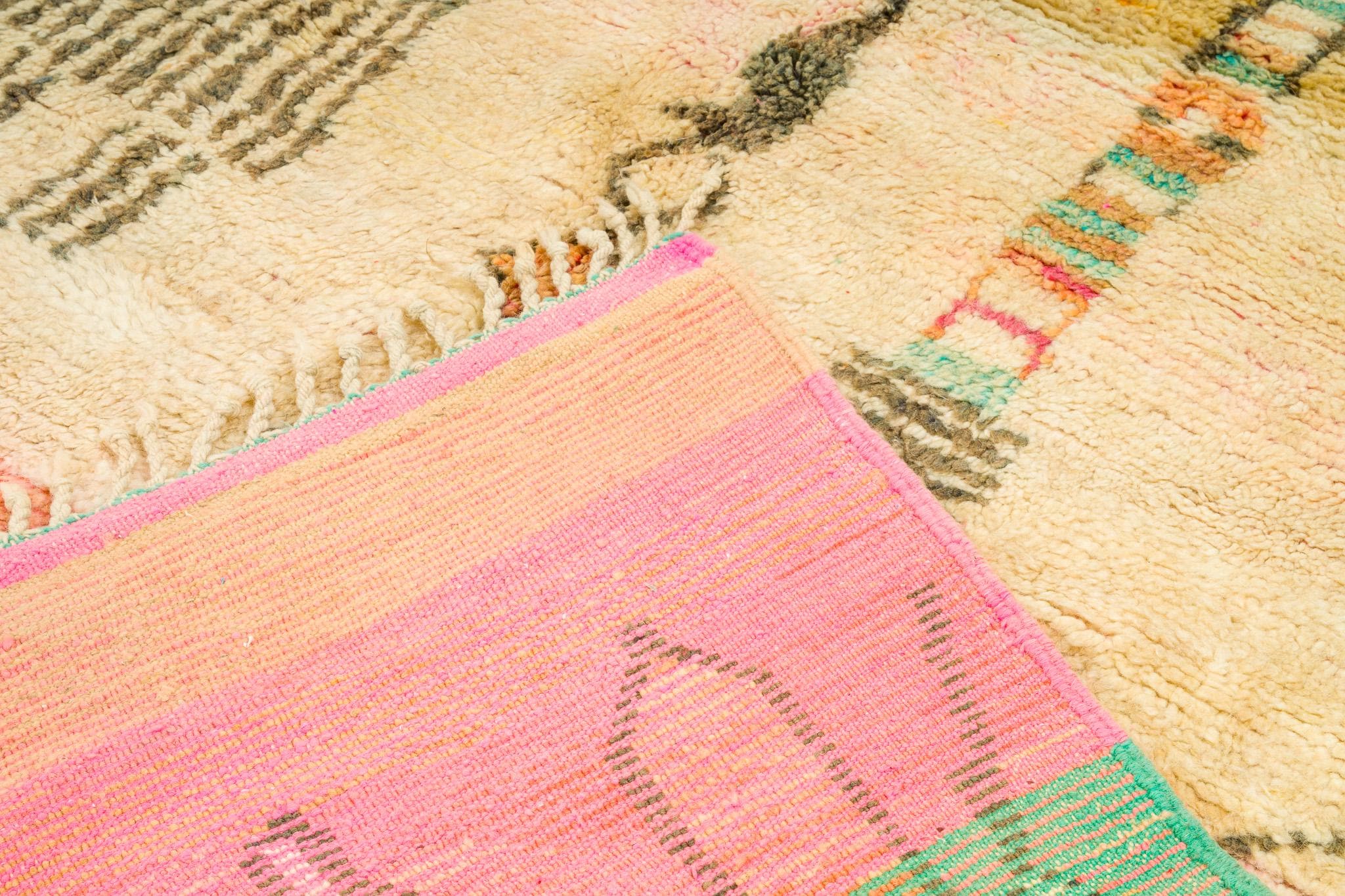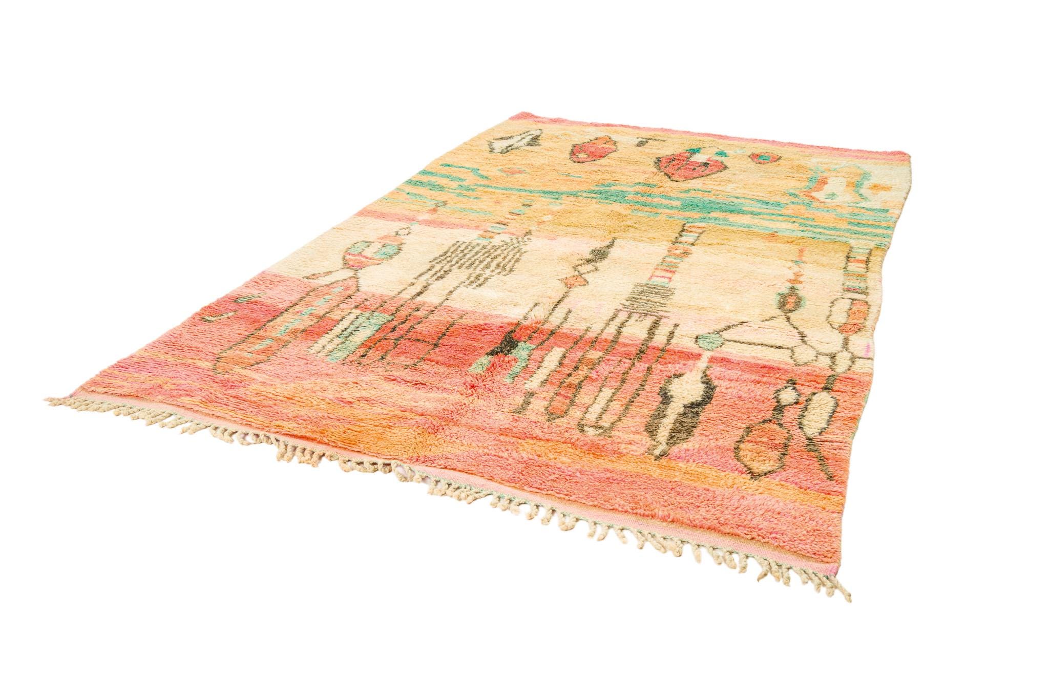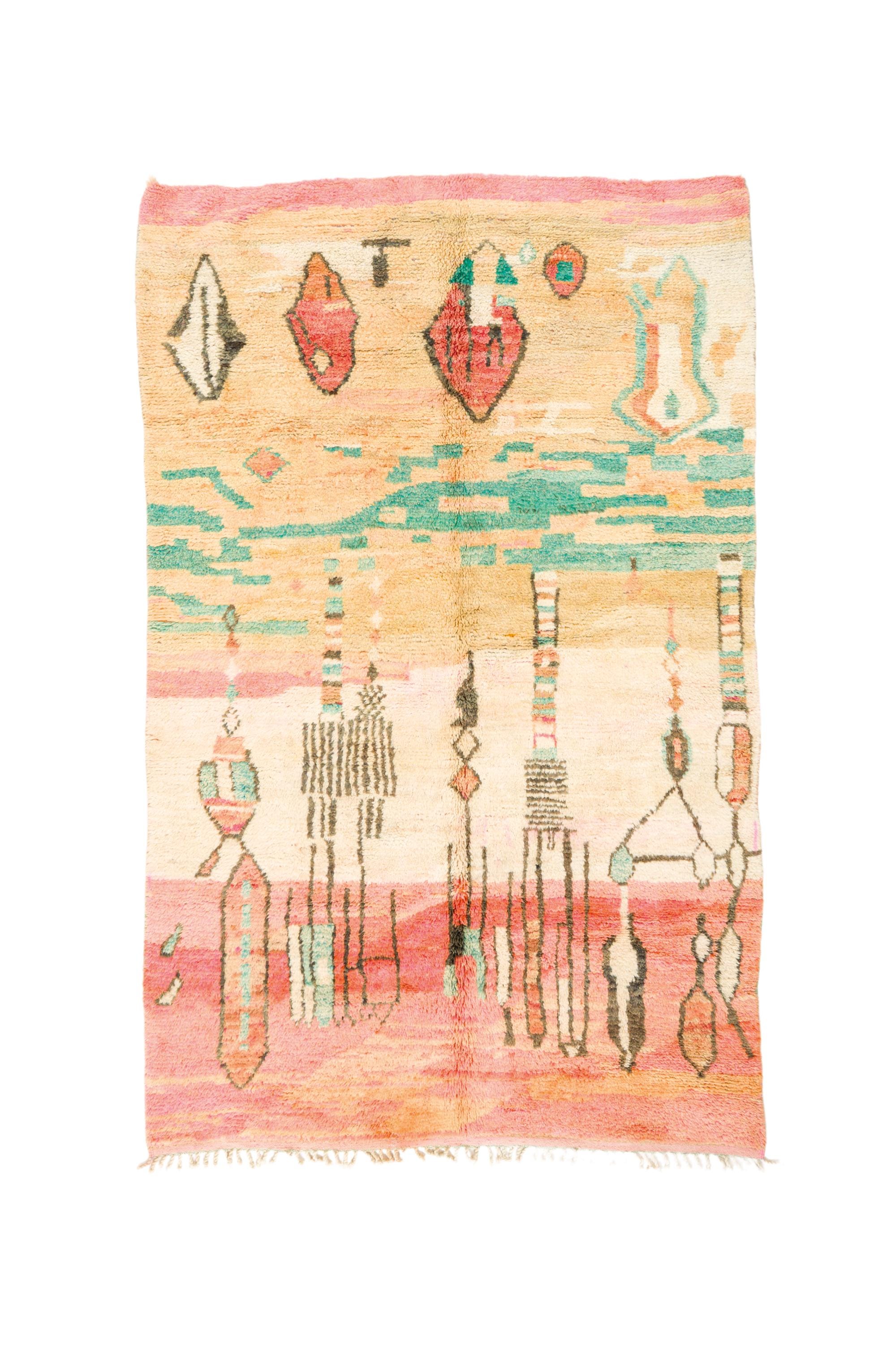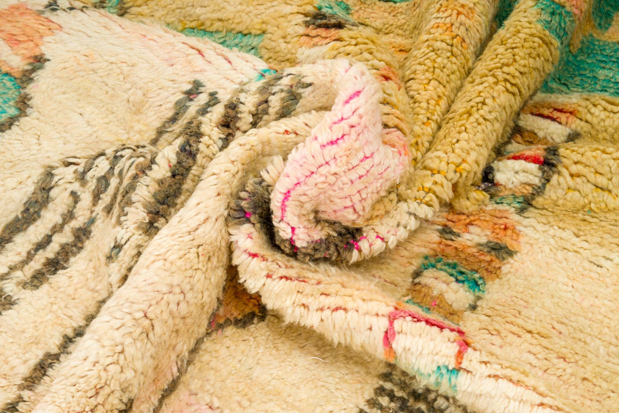 This rare and beautiful rug features a traditional Boujaad design, with intricate patterns and symbols that tell stories of Moroccan culture and heritage. Made from high-quality wool, this rug has been carefully preserved to maintain its original charm and character.