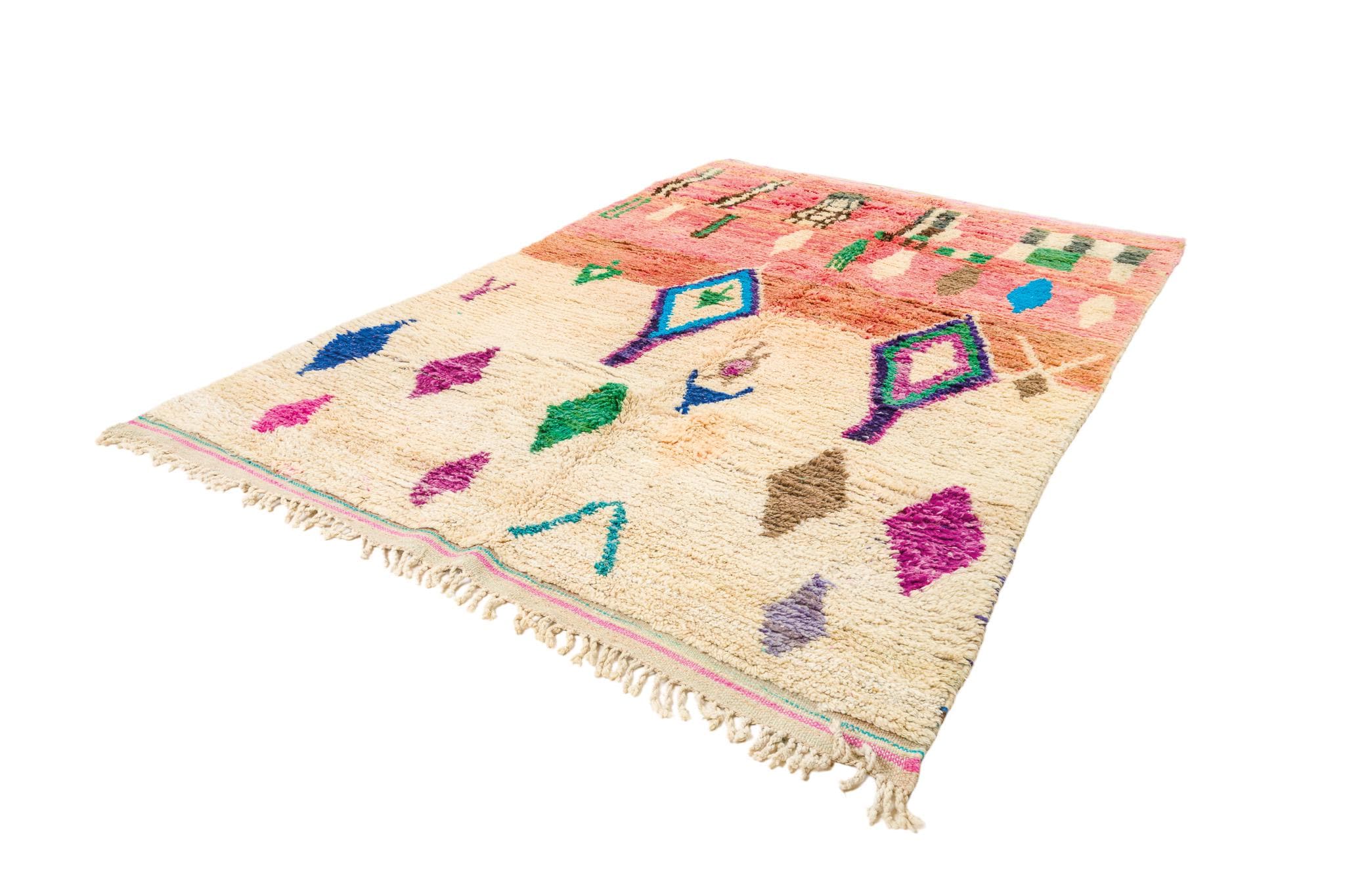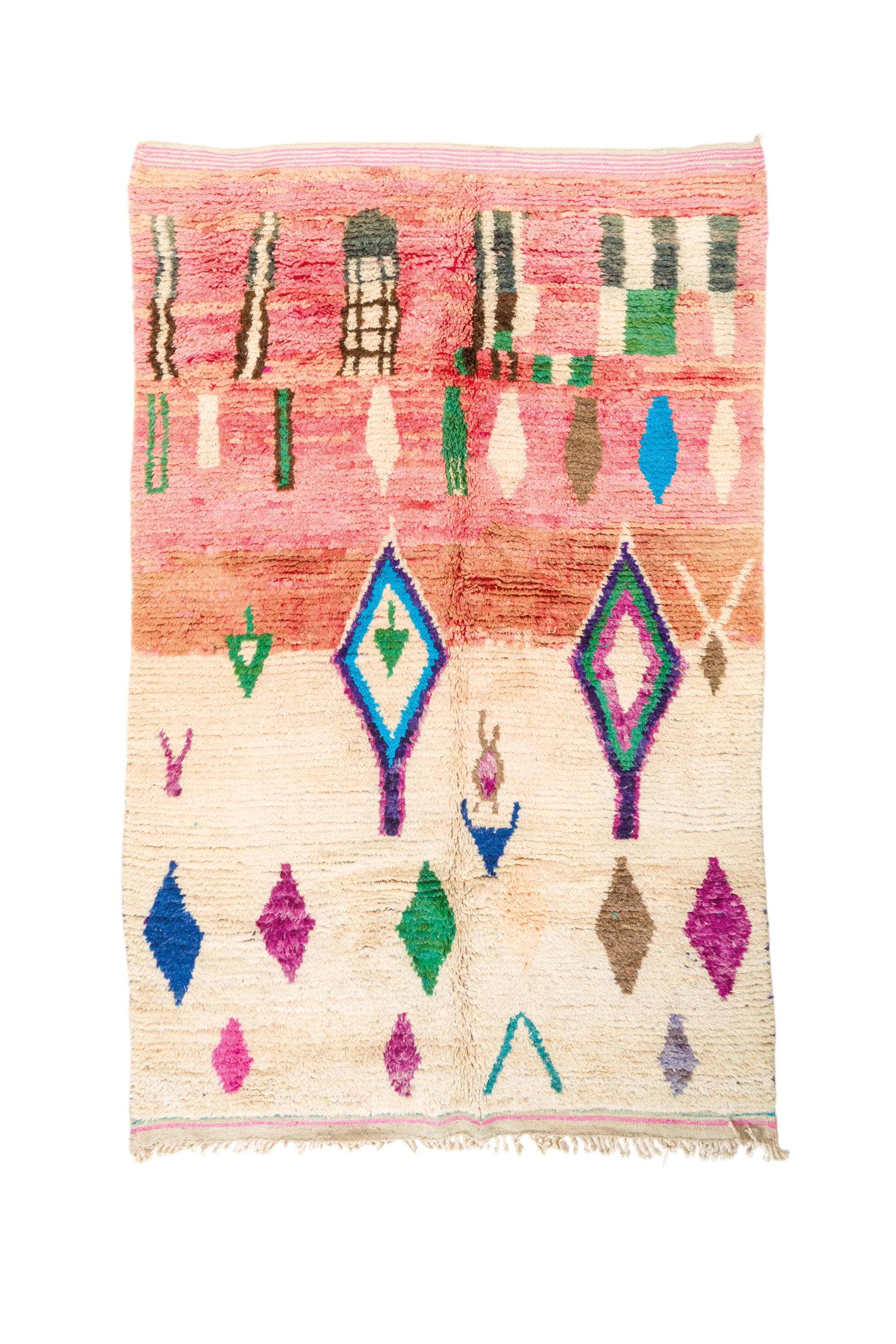 This rare and beautiful rug features a traditional Boujaad design, with intricate patterns and symbols that tell stories of Moroccan culture and heritage. Made from high-quality wool, this rug has been carefully preserved to maintain its original charm and character.