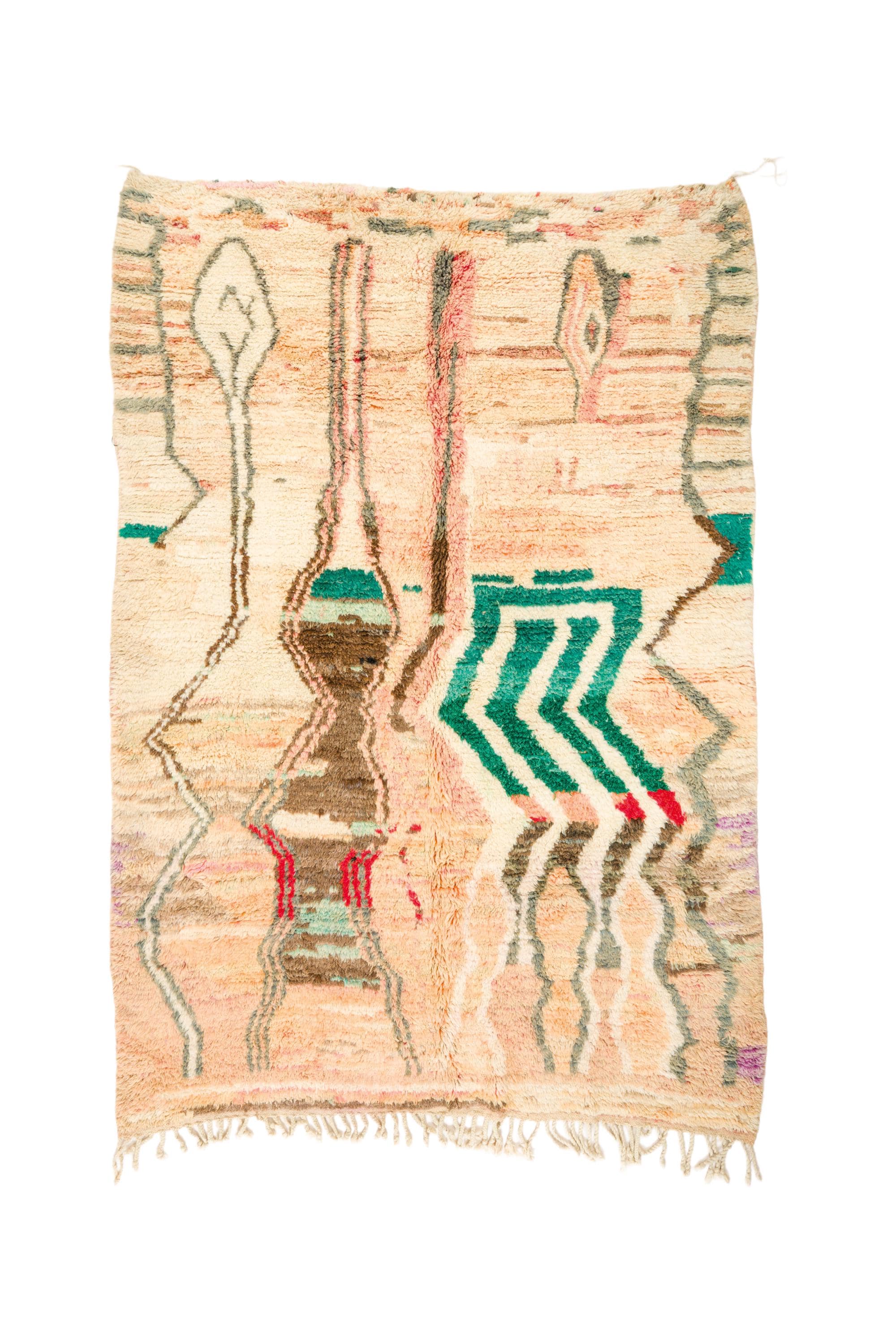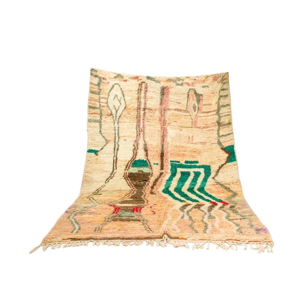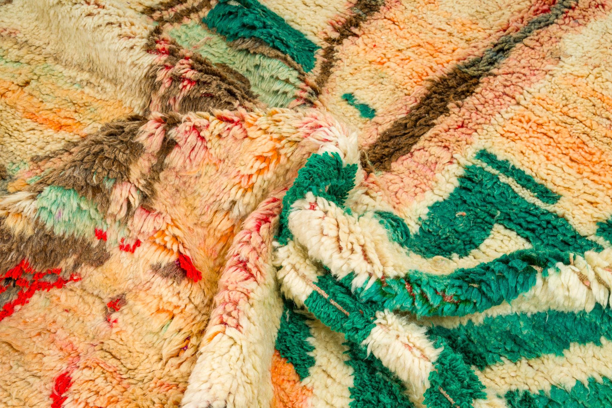 This rare and beautiful rug features a traditional Boujaad design, with intricate patterns and symbols that tell stories of Moroccan culture and heritage. Made from high-quality wool, this rug has been carefully preserved to maintain its original charm and character.