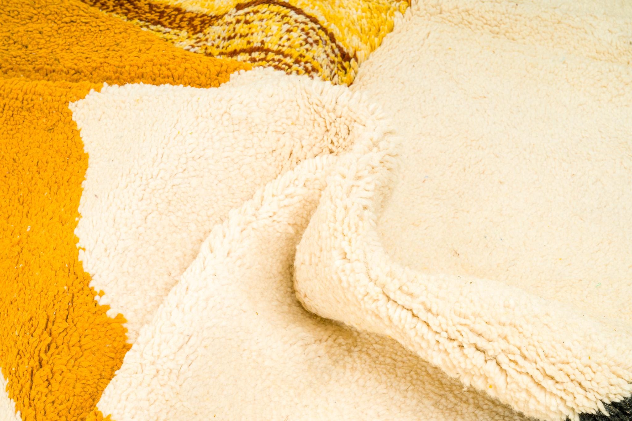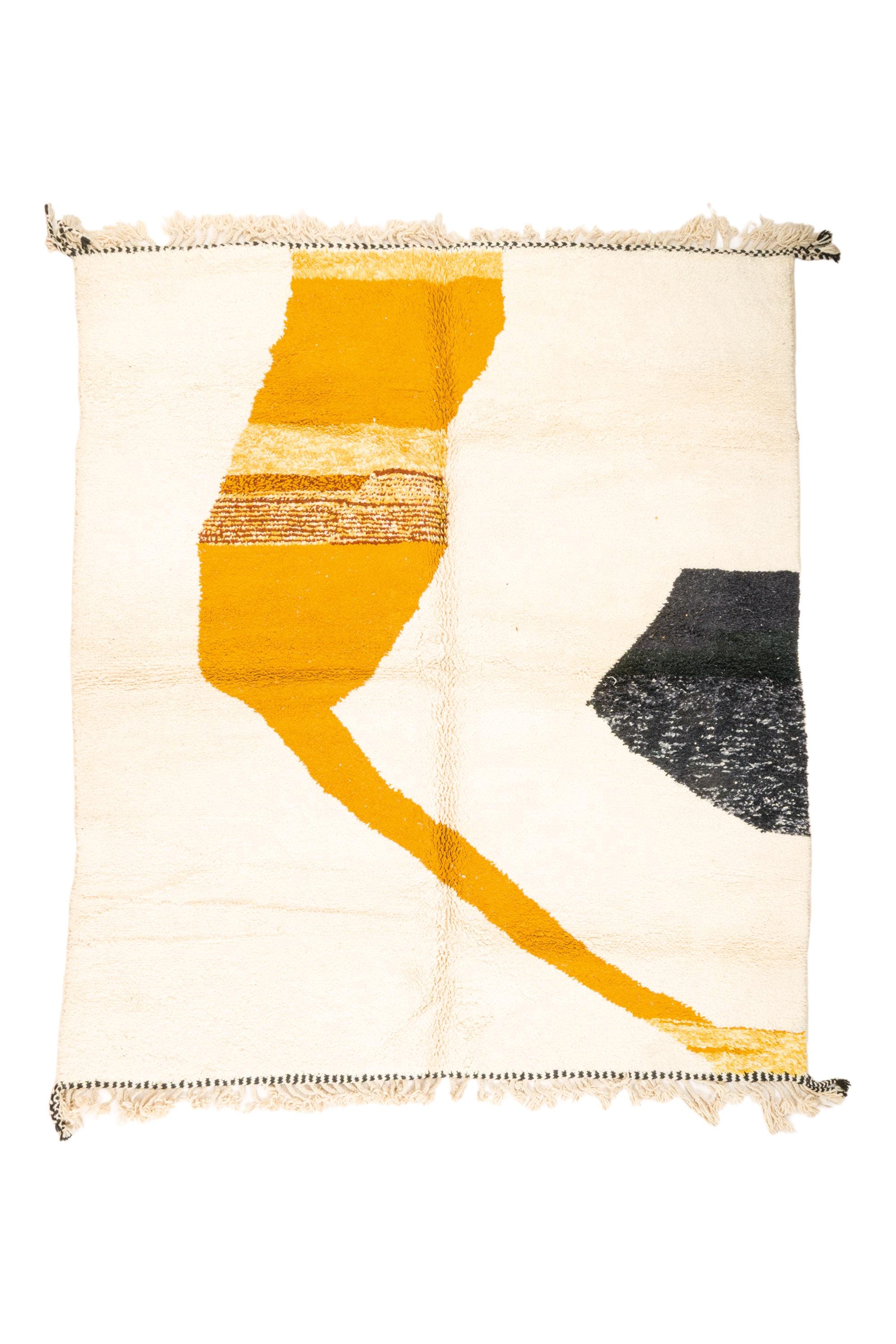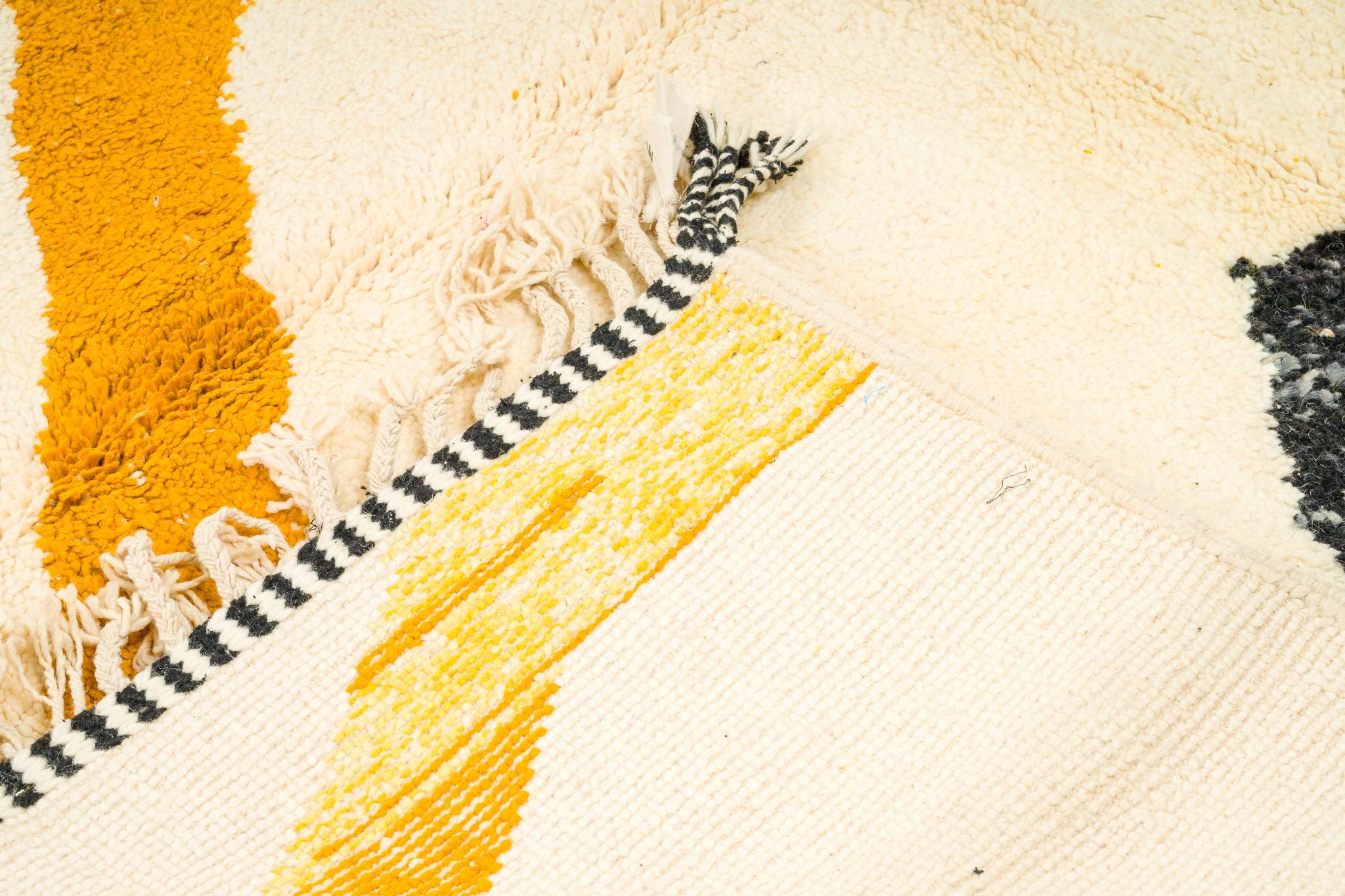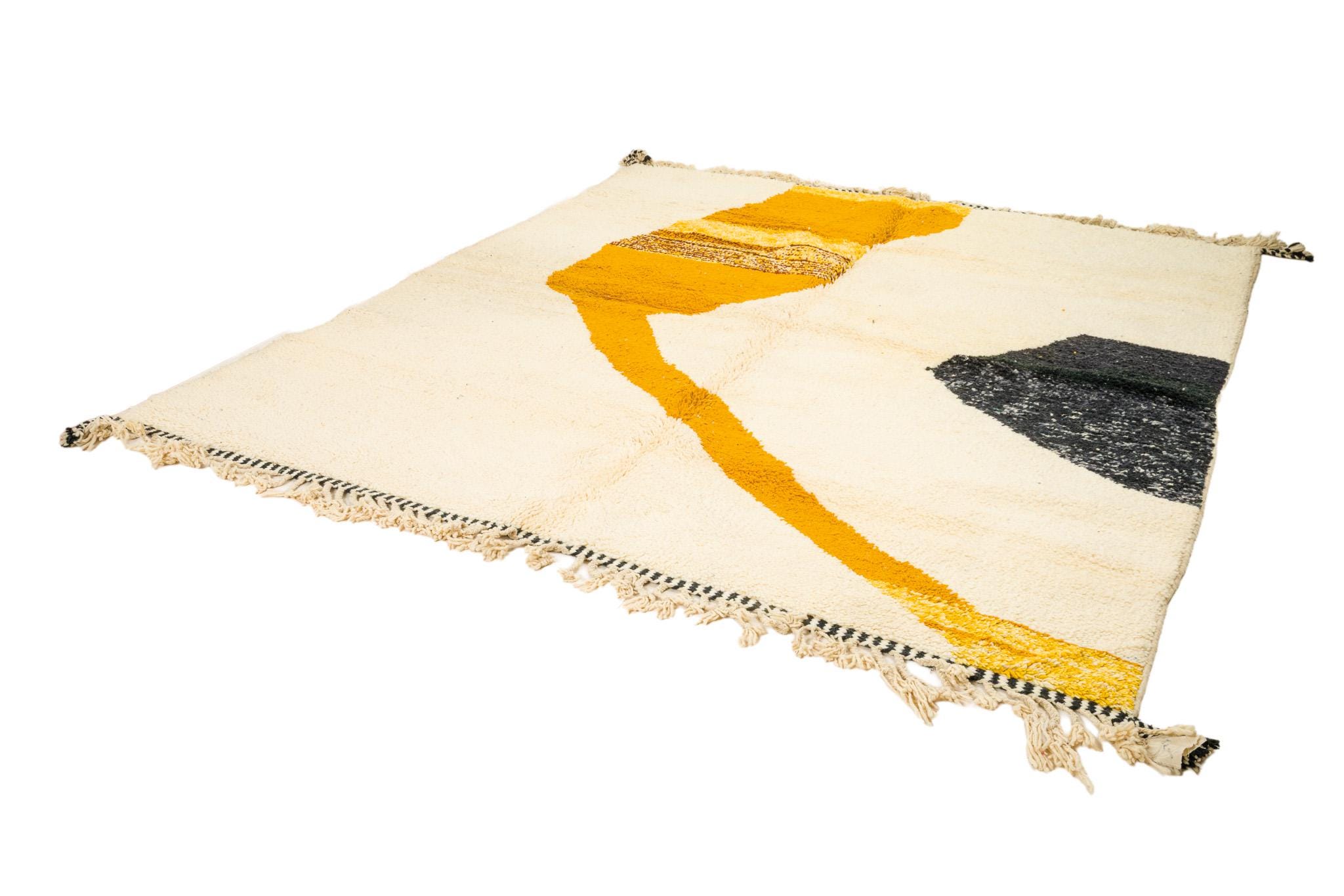 Large BENIOURAIN RUG, Moroccan Handmade Rug ,Handmade Sheep Wool Rug , Berber carpet , Yellow and black Carpet