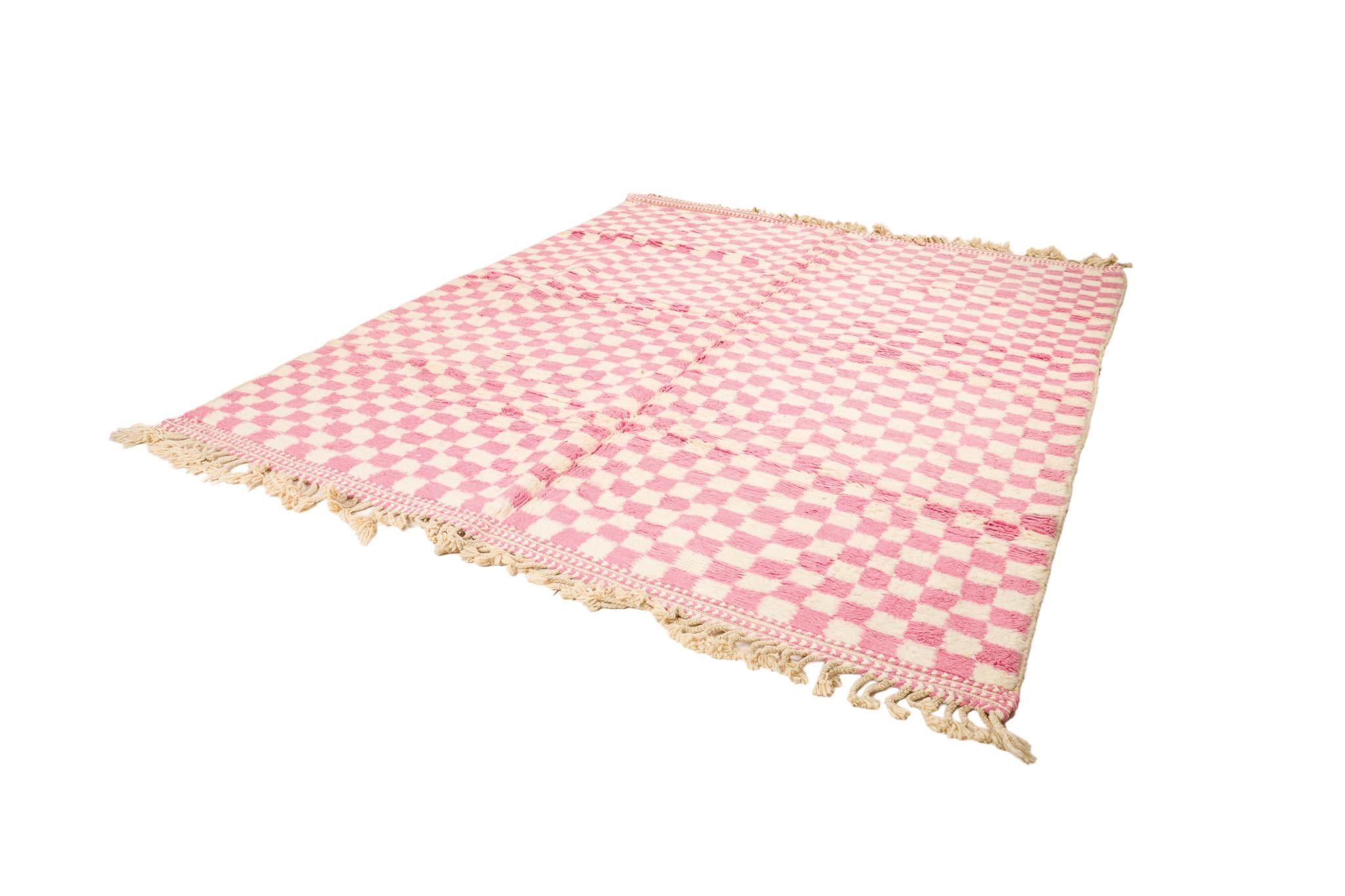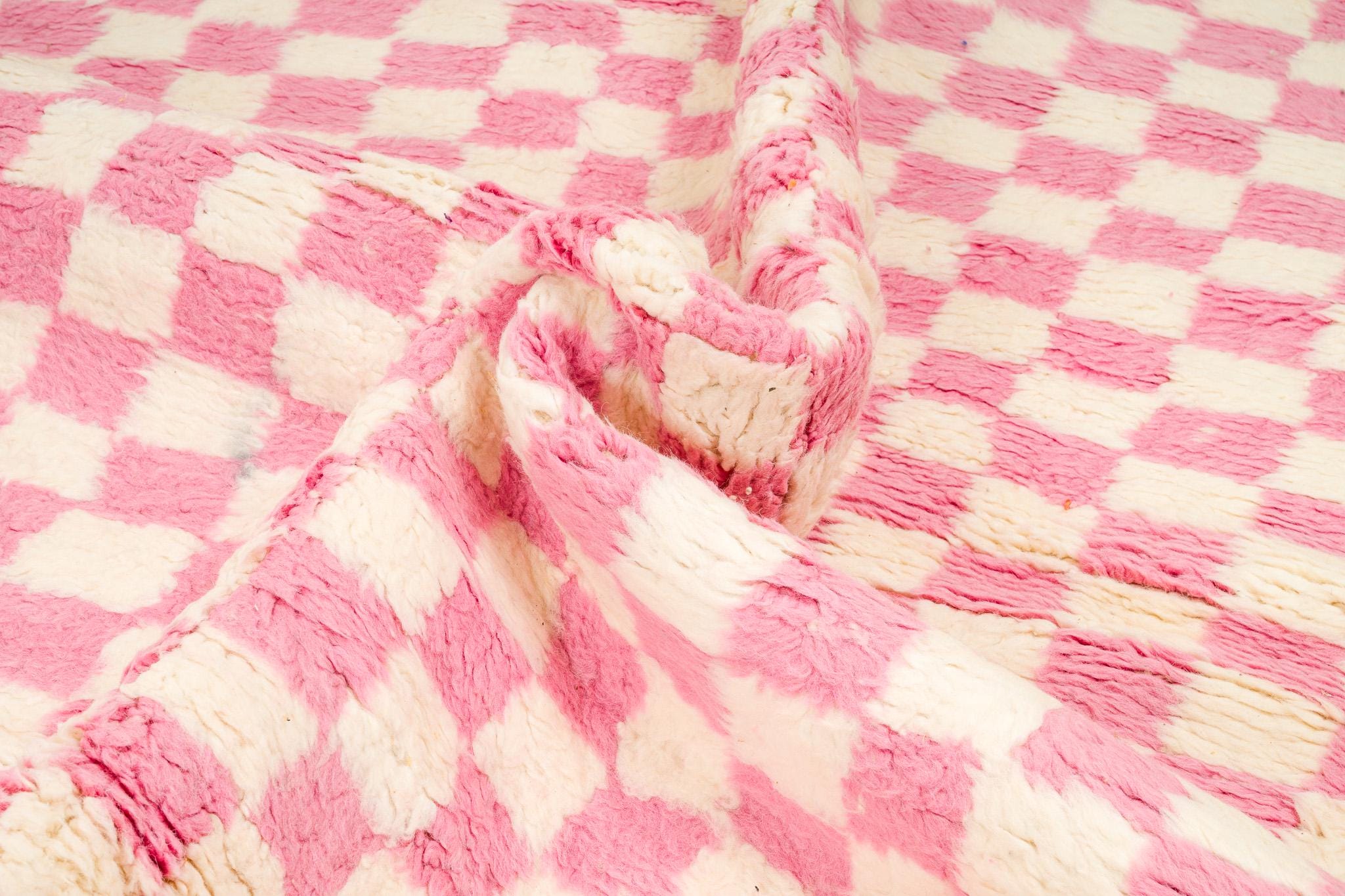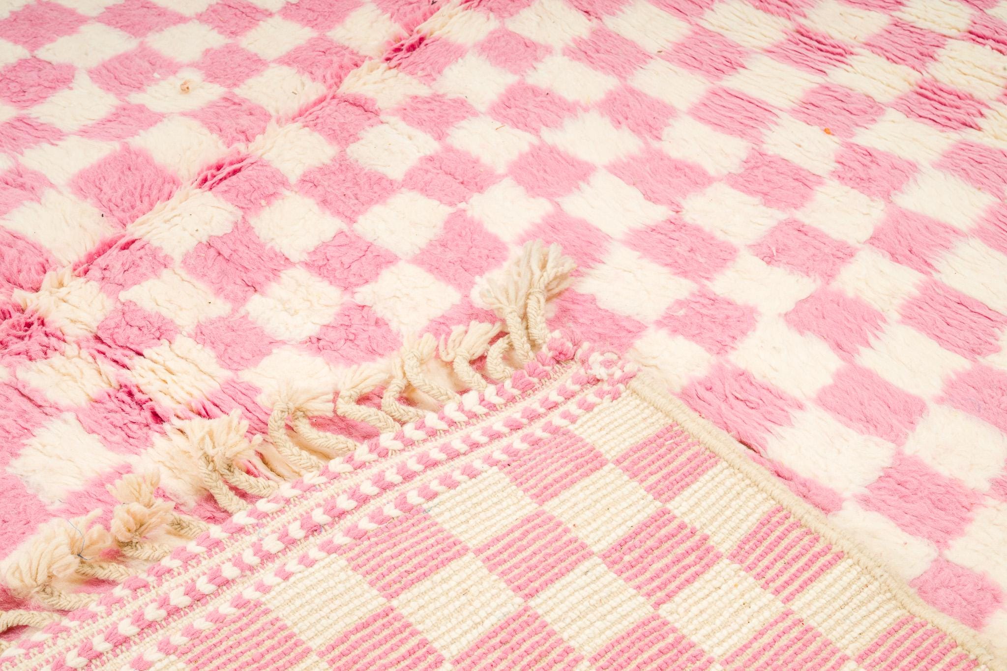 Large BENIOURAIN RUG, Moroccan Handmade Rug, Pink And White ,Handmade Sheep Wool Rug , Berber carpet ,
