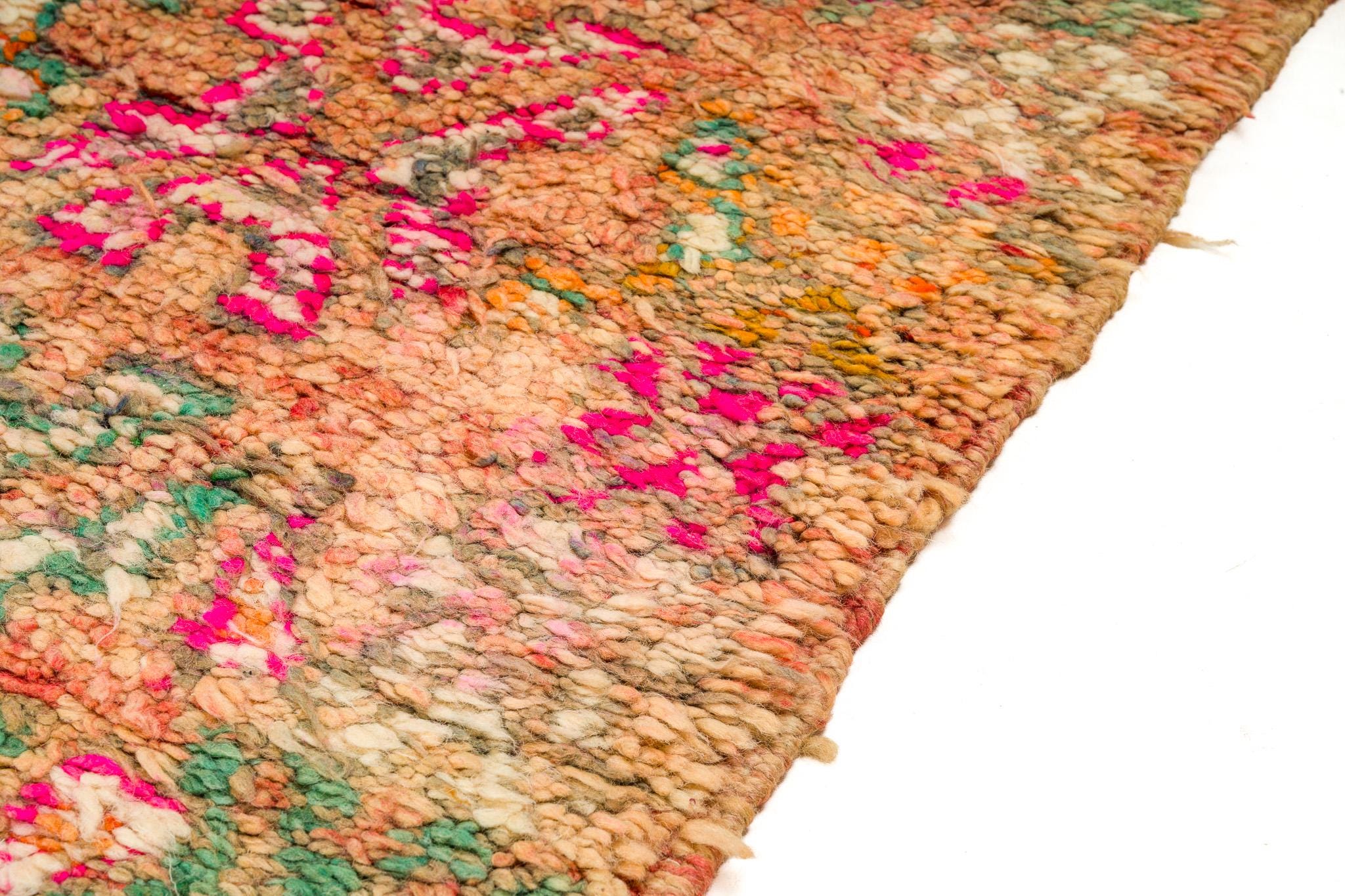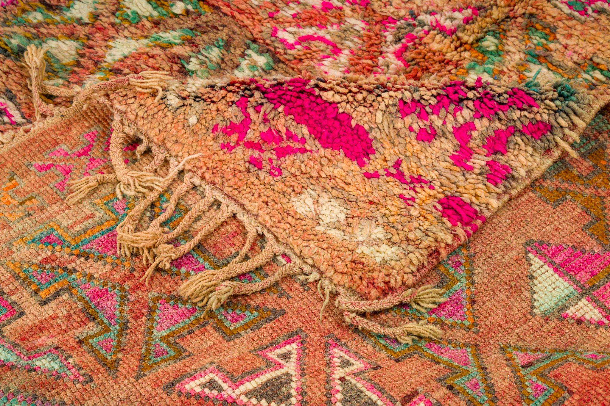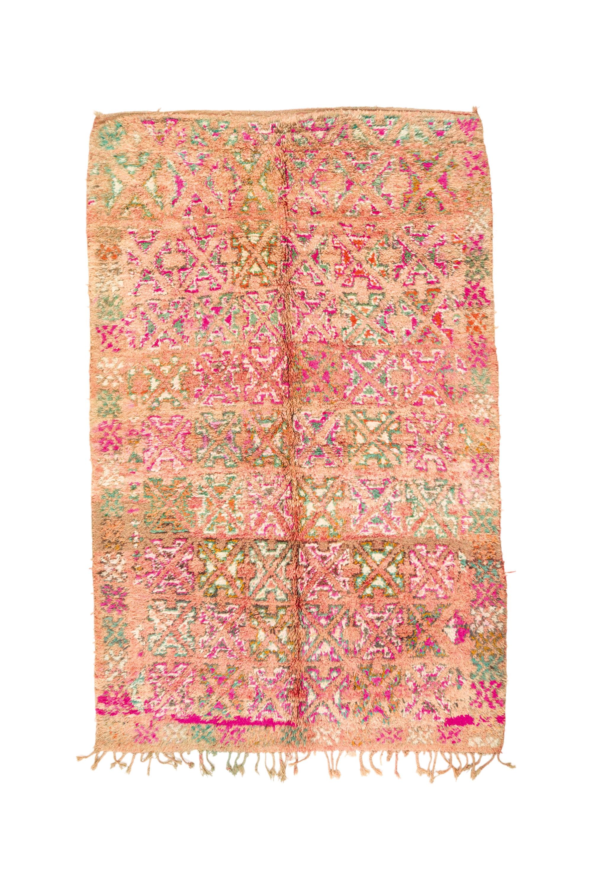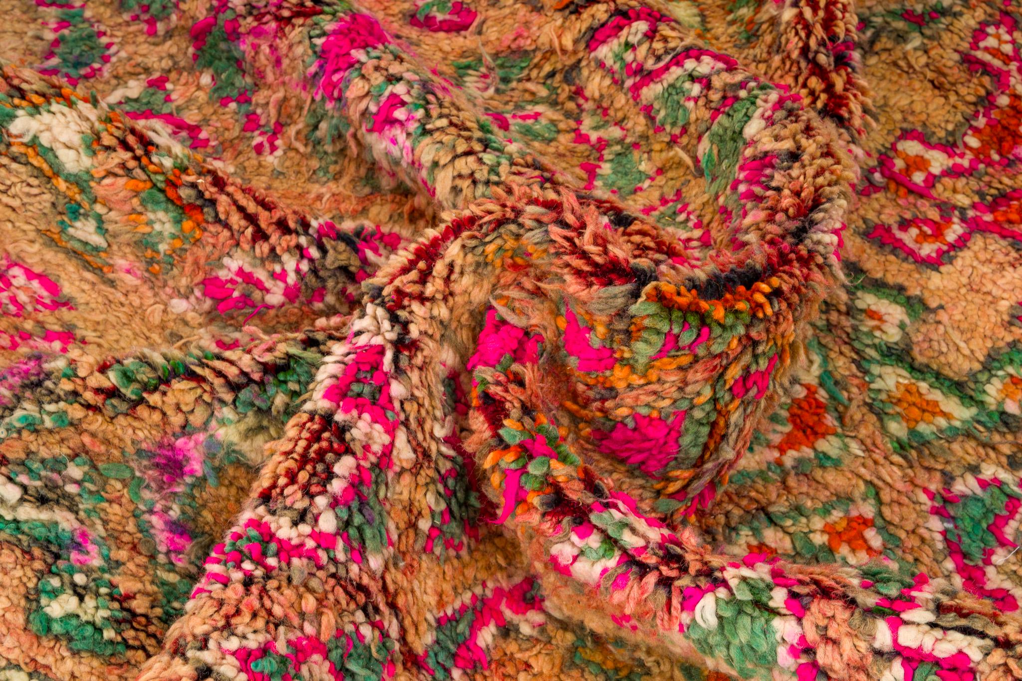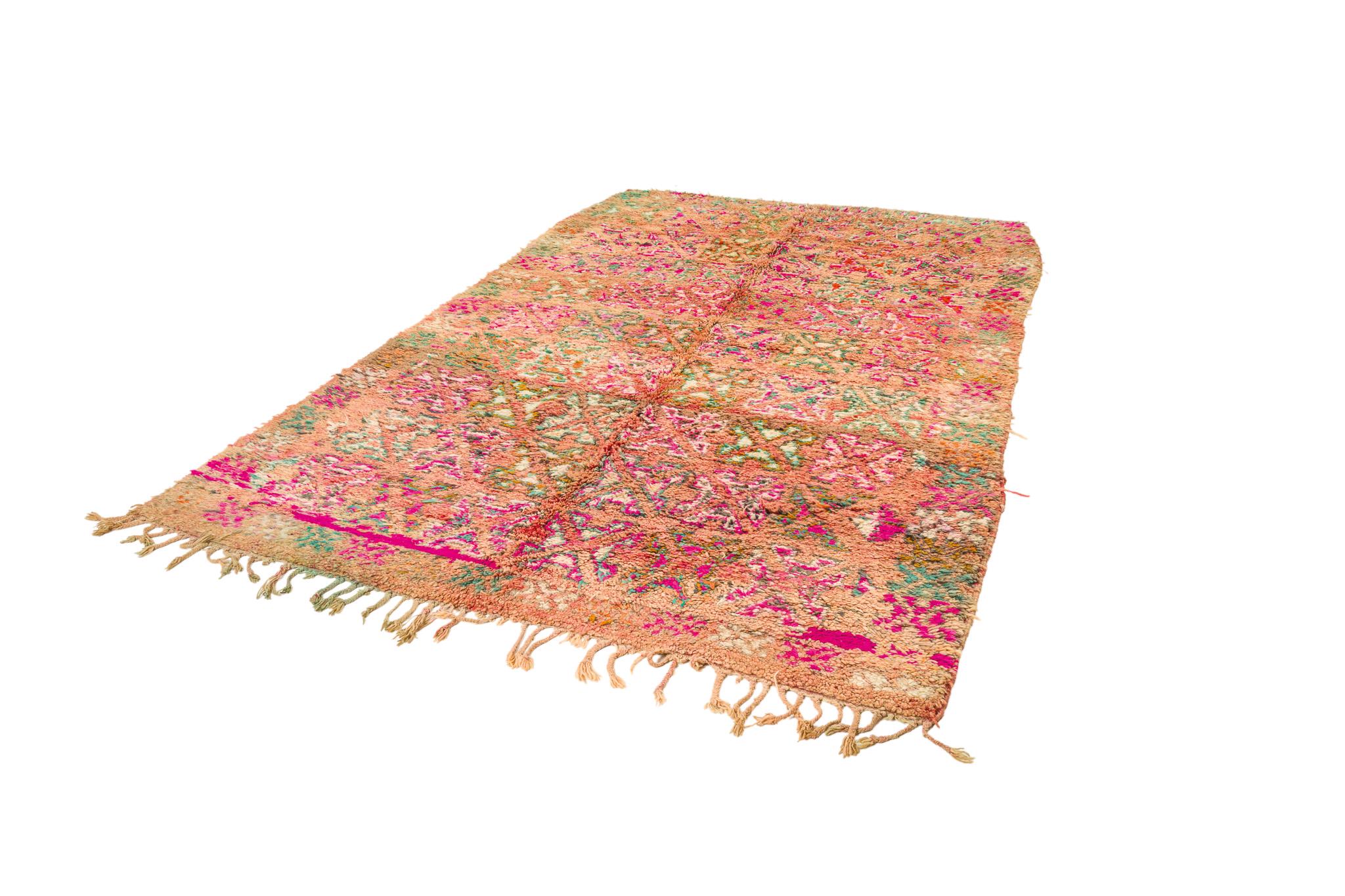 This rare and beautiful rug features a traditional Boujaad design, with intricate patterns and symbols that tell stories of Moroccan culture and heritage. Made from high-quality wool, this rug has been carefully preserved to maintain its original charm and character.