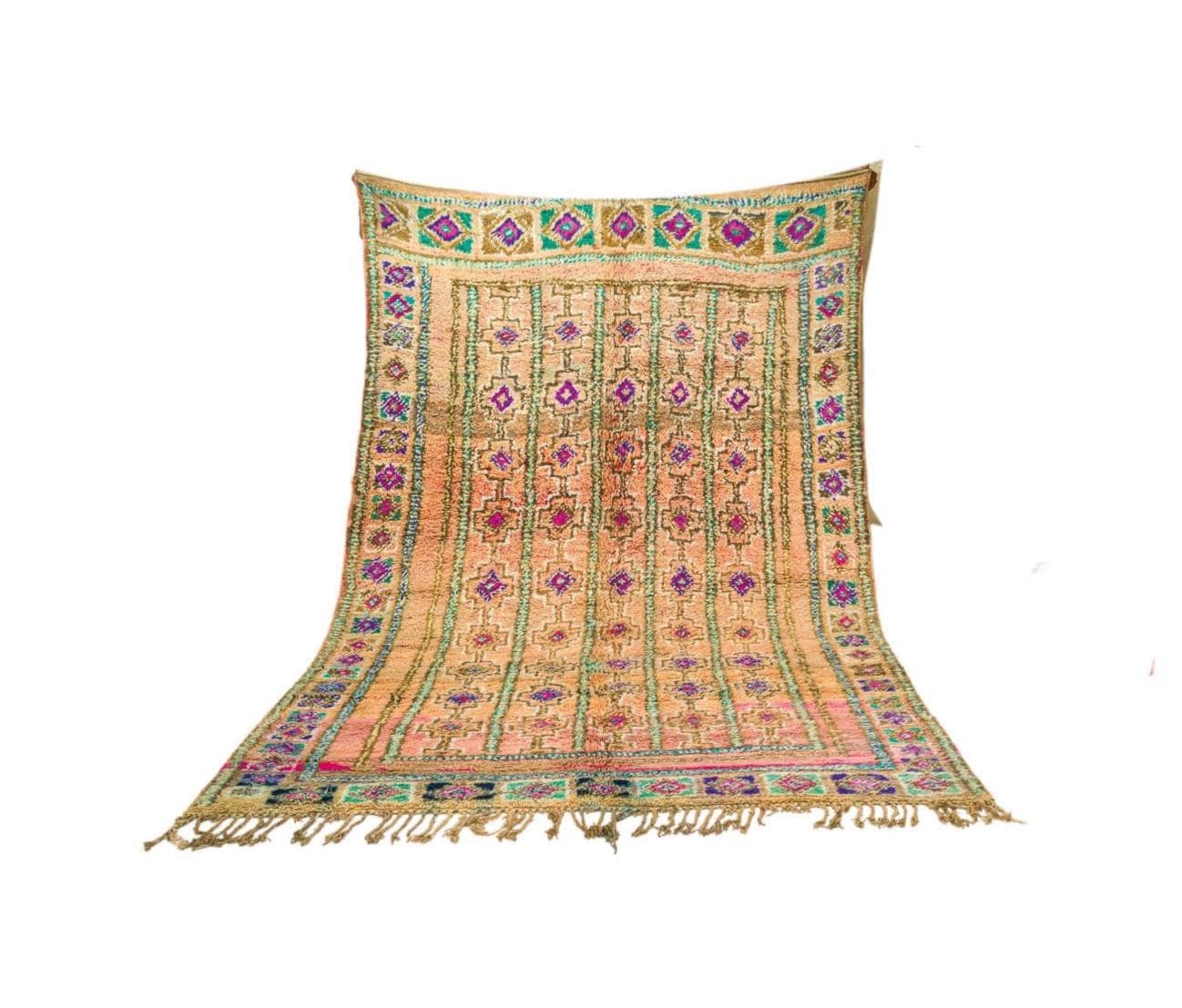 This rare and beautiful rug features a traditional Boujaad design, with intricate patterns and symbols that tell stories of Moroccan culture and heritage. Made from high-quality wool, this rug has been carefully preserved to maintain its original charm and character.