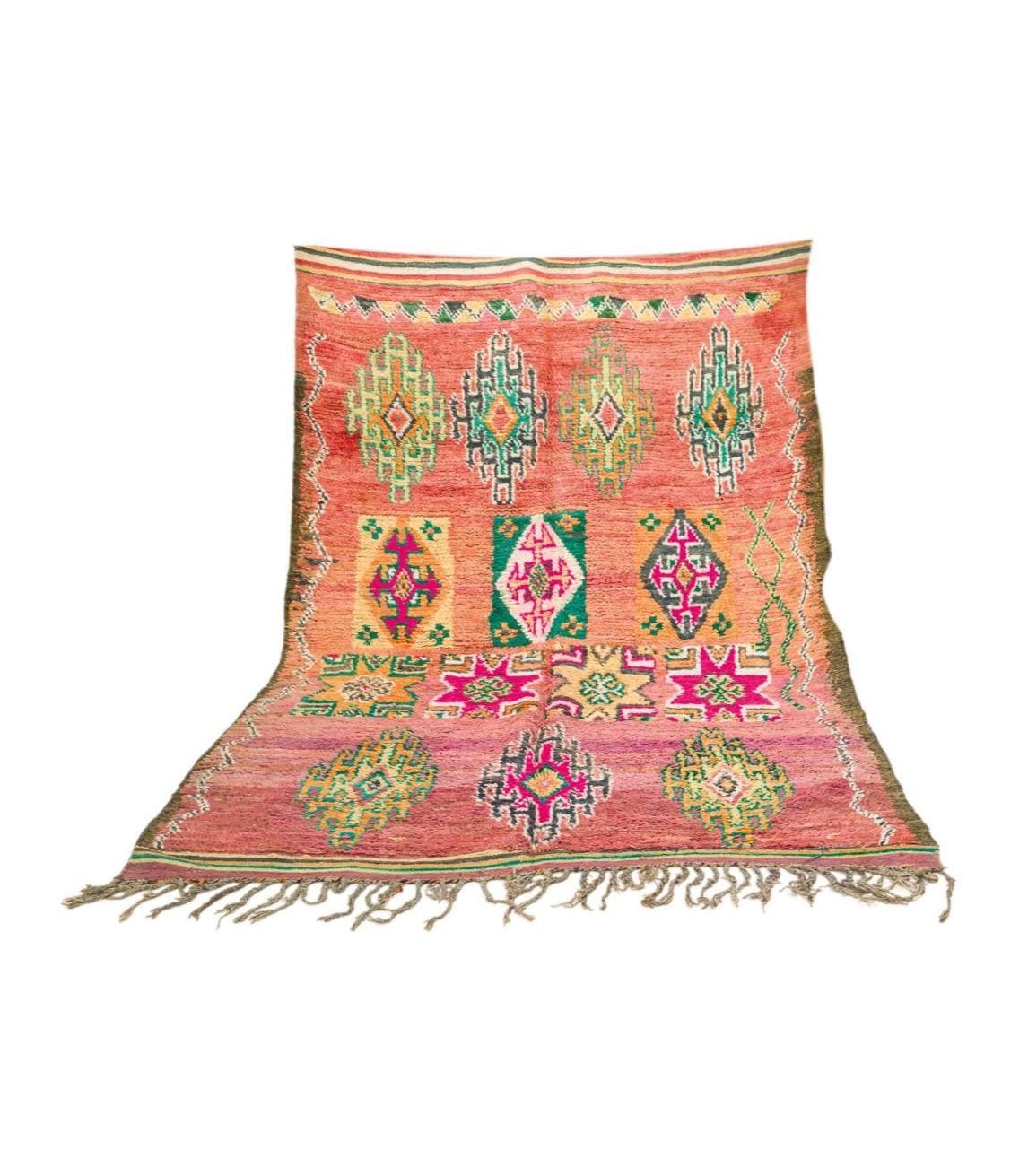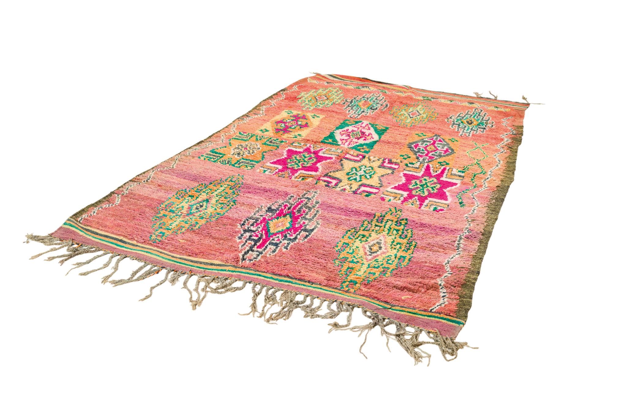 This rare and beautiful rug features a traditional Boujaad design, with intricate patterns and symbols that tell stories of Moroccan culture and heritage. Made from high-quality wool, this rug has been carefully preserved to maintain its original charm and character.
