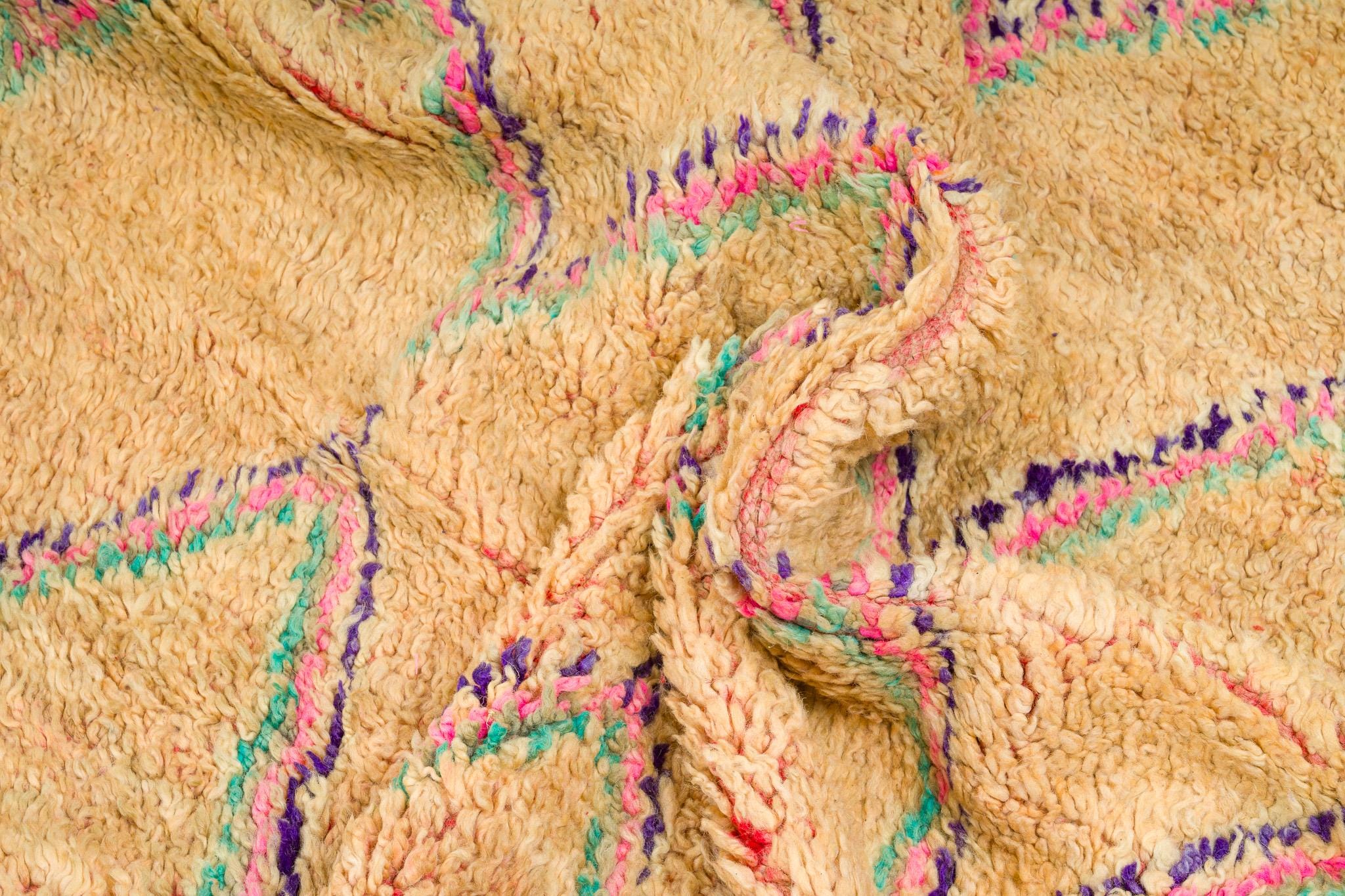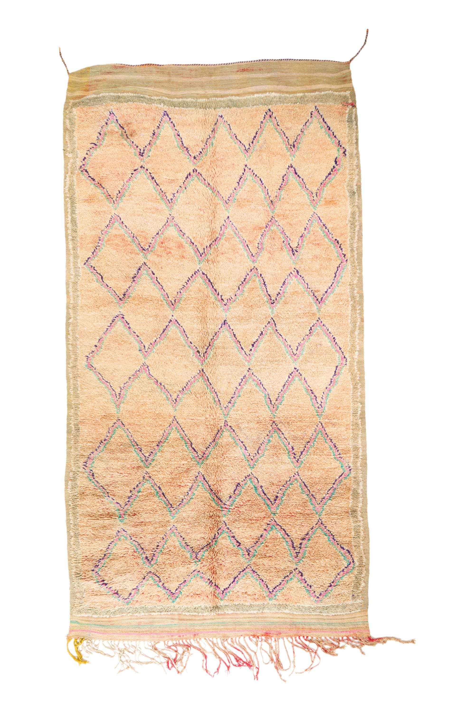 This rare and beautiful rug features a traditional Boujaad design, with intricate patterns and symbols that tell stories of Moroccan culture and heritage. Made from high-quality wool, this rug has been carefully preserved to maintain its original charm and character.