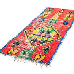 This rare and beautiful rug features a traditional Boujaad design, with intricate patterns and symbols that tell stories of Moroccan culture and heritage. Made from high-quality wool, this rug has been carefully preserved to maintain its original charm and character.